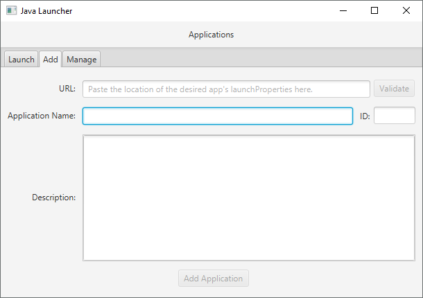 Paste that URL into the URL field, click the Validate button, and if all looks good, click Add Application.