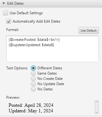 These selections are only here to show you how the dates will appear on your page under different conditions. A sample result is displayed in the Preview section:
