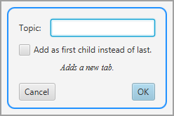 This will add a new tab (a major section, displayed across the top of your web pages) to your website. It will be added after the other tabs, unless you select the Add as first child" option.