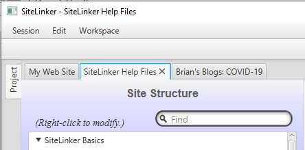 SiteLinker remembers your last project and opens it for you automatically when you launch the program (just one).