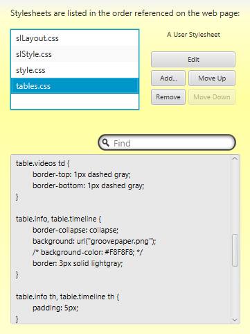It is not recommended that you edit the two built-in stylesheets; program updates may cause these to be overwritten by a more current version. Instead, you should override any styles you wish to modify in your own stylesheet.