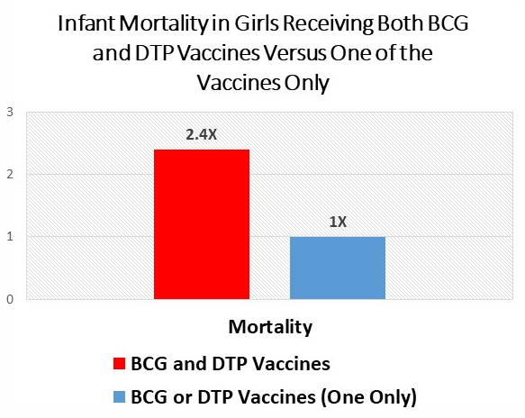 Deaths increase among girls given both the BCG and DPT vaccines, above and beyond those that resulted from either one by itself.