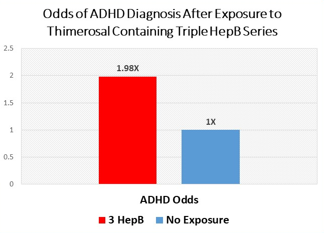 However, also noted in the study: "It was revealed that the exposed group receiving three doses of infant Thimerosal-containing hepatitis B vaccine in comparison to its contemporaneous unexposed group receiving no doses of hepatitis B vaccine was at a more than nine-fold significantly higher risk of adverse effects"