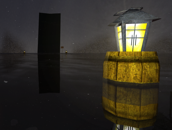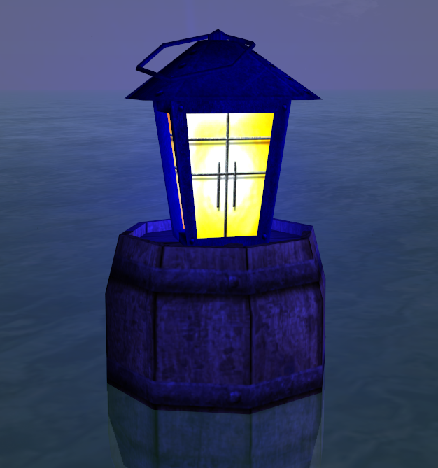 Blue buoys (and their blue lamps) signify a shipping lane that leads to another server. 1 These buoys are named for the compass direction they leave the server (N, S, E, W) and the percentage of distance that exit point is from the West (for N/S exits) or North (for E/W exits) edge. So as an example, the The percentage is used to allow the buoys to match up with their counterparts on servers of different sizes. Thus, after crossing over from |