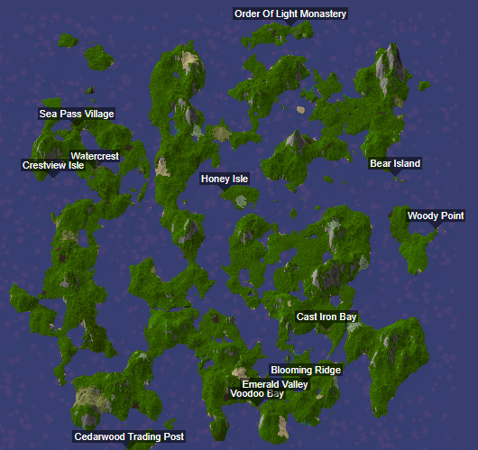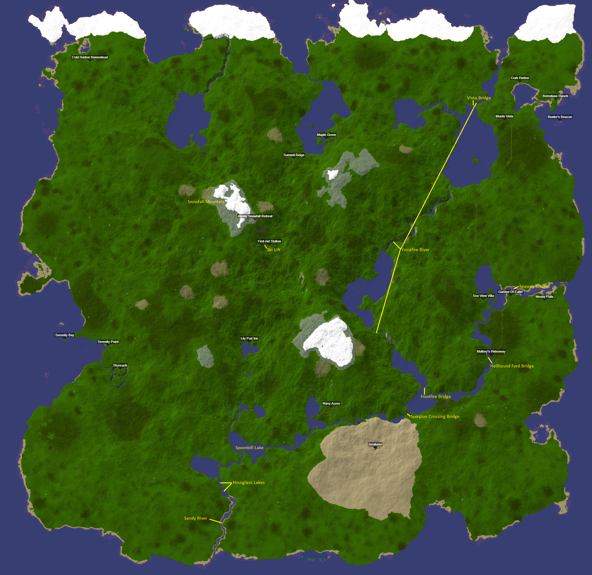 Click on each map to see a full-sized, current map of the world. Note that Riverland (4k size) is quite a bit larger than the 2k Riddleridge and Watercrest; these maps are scaled correctly!