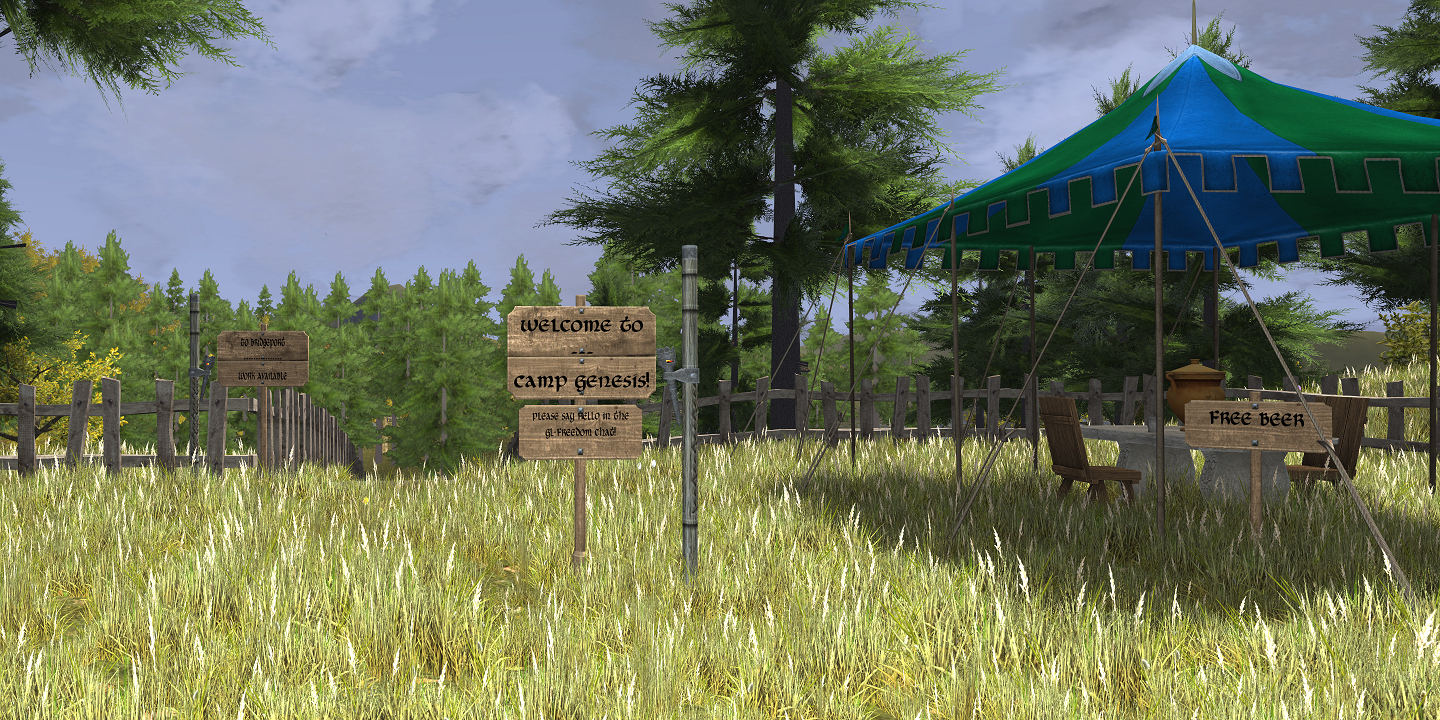 When you first create your character and log into Riddleridge, you will be in our starting town of Camp Genesis at the tutorial area.