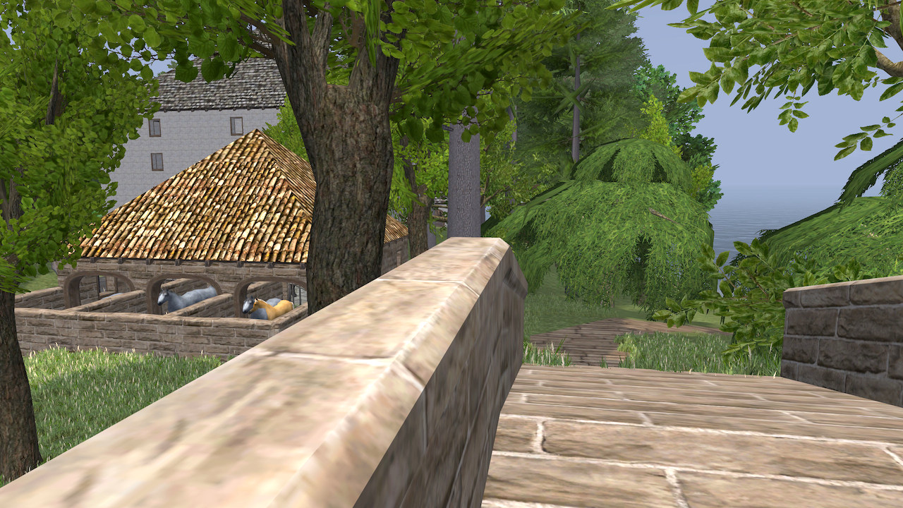 On the way to the vineyard, you'll pass over the main road and look back over the stables.