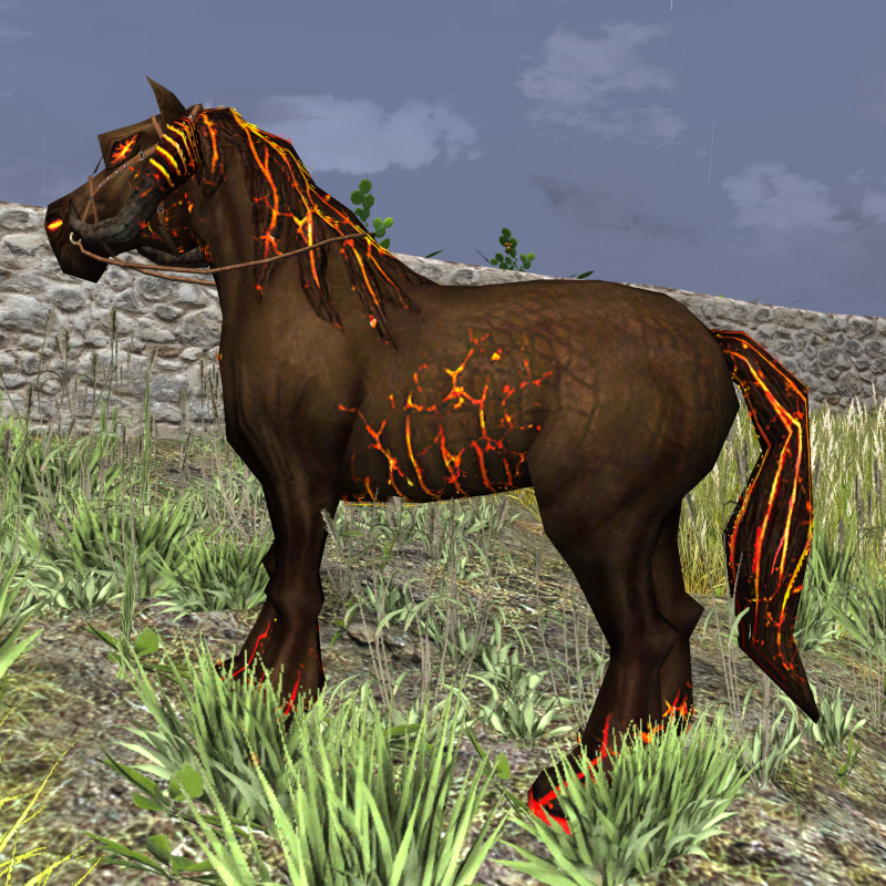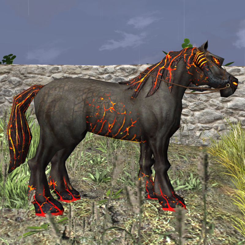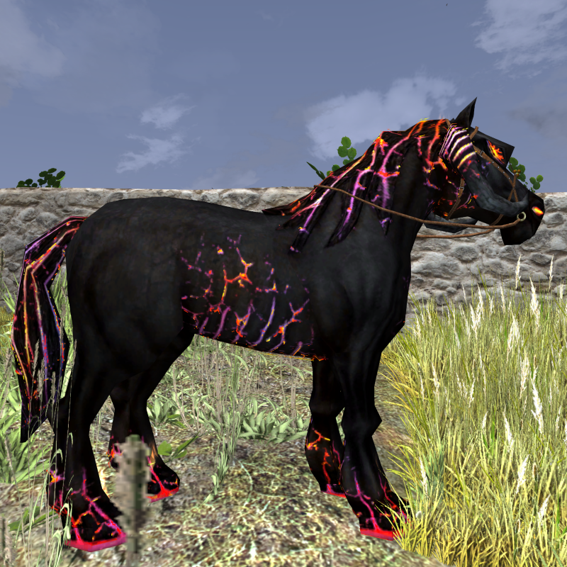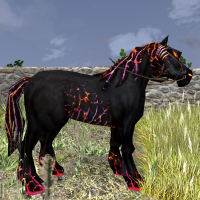 These are the hellhorse breeds we normally have. Note that the Molten breed is said to be 2.5 percent faster than the others, all other things being equal. They can be aggressive, but can be very useful hitched to a large cart. Just don't stand too close.
